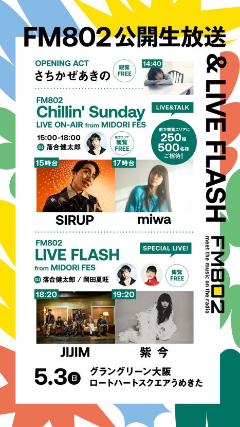 ※詳細はこちら【▶FM802ピックアップ】【▶MIDORI FES. 公式サイト】