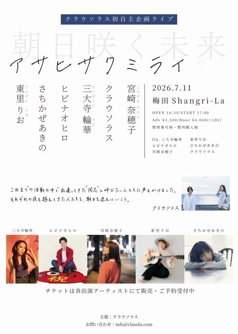 (公演日までのラララやライブにてチケット事前精算・引換が可能です。お引き換えの際『整理番号のお知らせメール』をご提示ください。)
